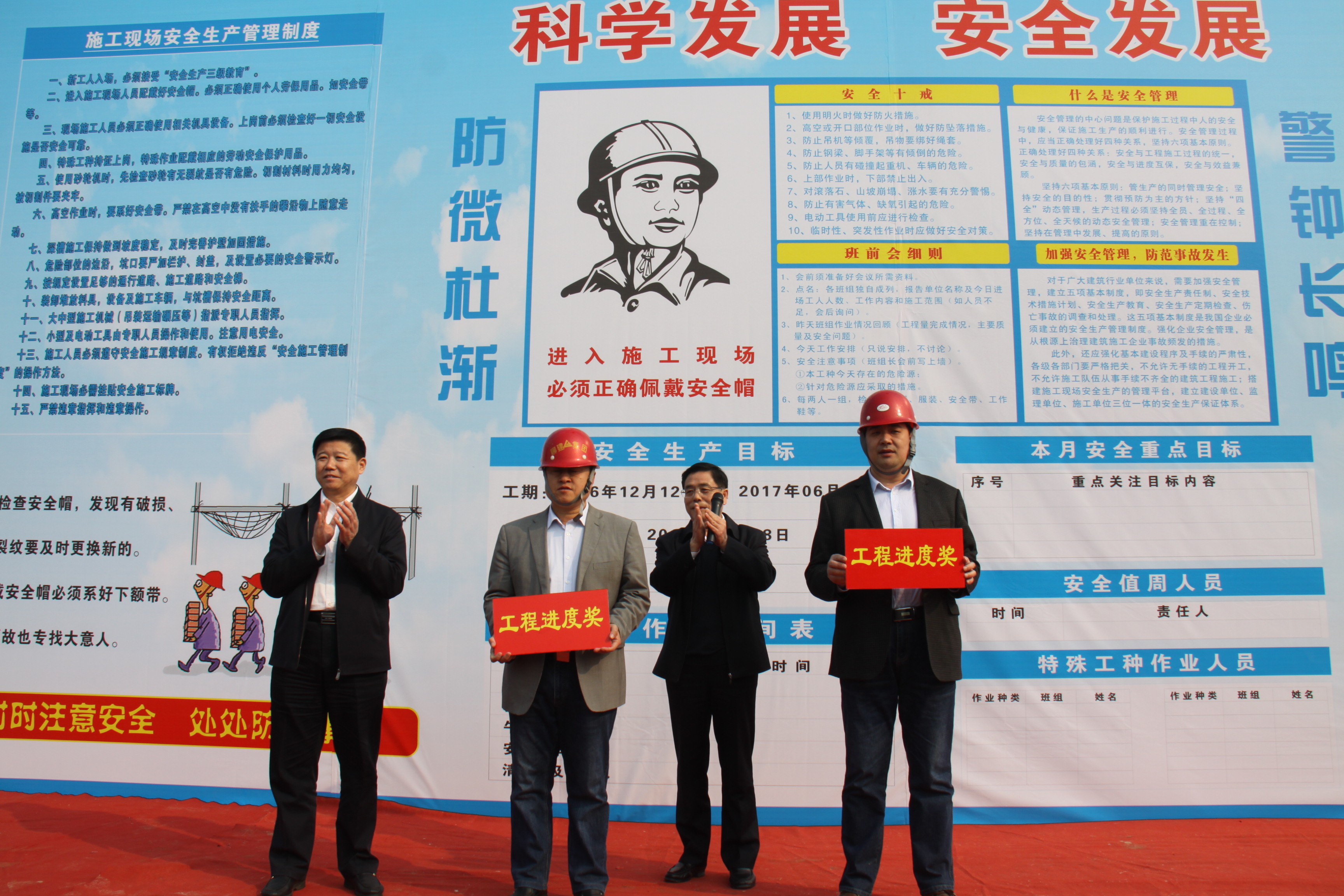 3月18日上午9点16分,聊城一中新校、实验小学教学楼举行封顶仪式,聊城市副市长成伟、人民政府副秘书长冯能斌、旅游度假区党工委书记王立民等领导陪同活动。现场礼炮齐鸣,场面热烈,成伟为施工单位颁发了工程进度奖。