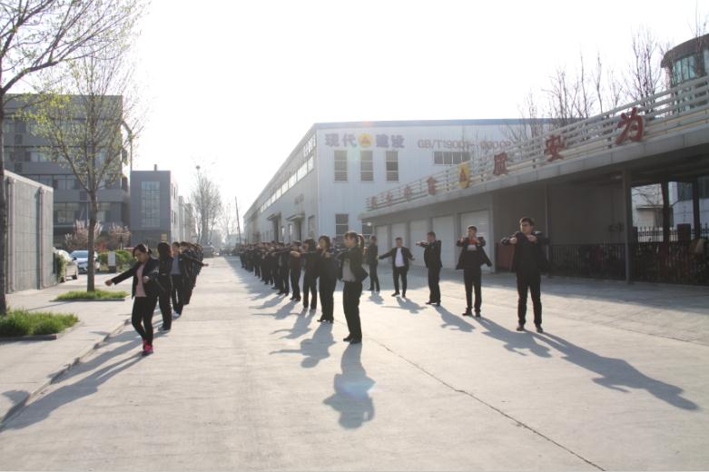 为弘扬企业文化,使全体职工的身体得到锻炼,工作效率得到提高,现代公司将做早操作为一项长效工作机制来抓,从2011年开始,已经坚持了6年。通过做早操,增强了职工的身体素质,改善了职工的精神面貌和工作作风,加强了各部门的凝聚力和协作力,展现了现代公司良好的精神面貌,让全体职工以饱满的精神状态迎接新一天的工作。