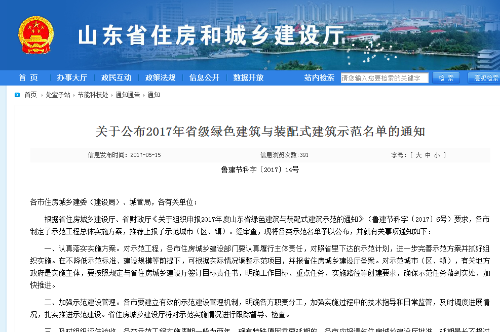 通知要求,项目要按照规定与省住房城乡建设厅签订目标责任书,明确工作目标、重点任务、实施路径等创建要求,确保示范任务落到实处、加快项目推进。公司产业园项目已于四月底被批准为省重点项目,华建一街区3#办公楼工程获批“山东省装配式建筑科技示范工程”。