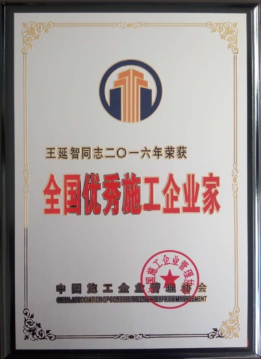 公司董事长王延智荣获“全国优秀施工企业家”