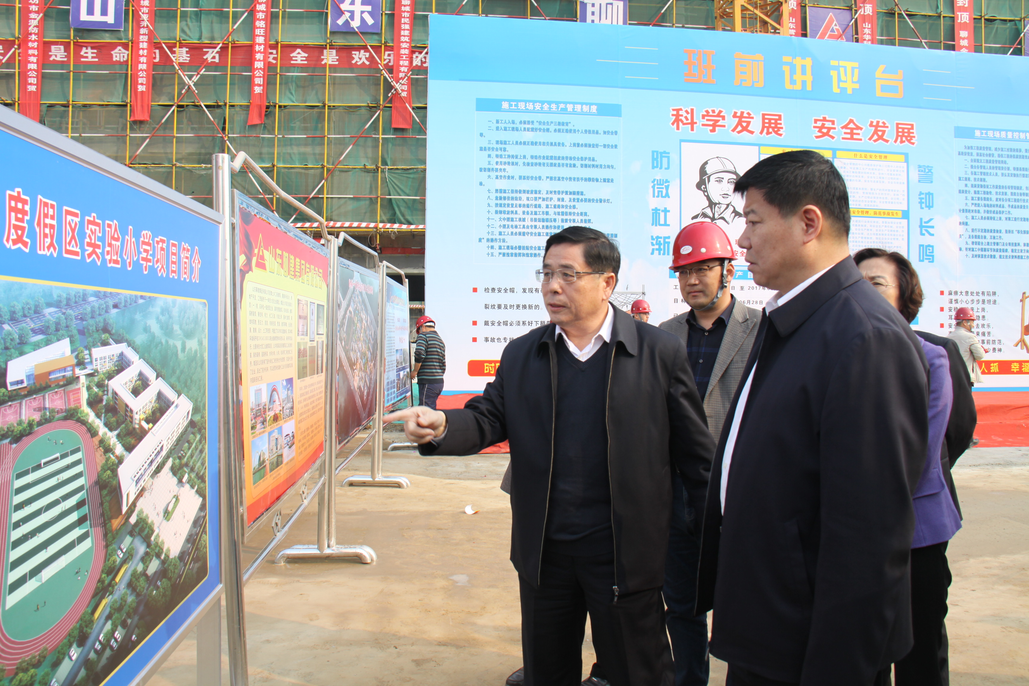 根据活动安排,建设方、施工方、教育局、聊城一中、财政局、旅游度假区等各方代表在施工现场办公区召开了工作调度会。各方详细汇报近期工作及下一步工作安排,成伟做重要讲话,他表示,建设学校是关乎民生的大事,是造福子孙后代的重要工程,一定要全面抓好各项工作,他对建设、工程质量、施工安全、资金、工期、施工环境等问题进行了重点强调,要求各方要加强沟通协调,保证工程顺利进行,保证学校如期投入使用。