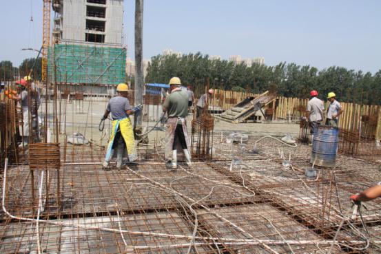 上午10点钟,温度已经接近38℃,虽然没有到最热的时候,但是呼吸的空气都燥热无比。在军王屯工地现场,工人顶着高温紧张施工,抢工期、抓生产,工作热情和气温一样居高不下。作为安置区居民建筑,工期进度、工程质量比以往要求更加严格,工人们每一道工序,都细致、严谨、认真,没有因为高温天气而懈怠。